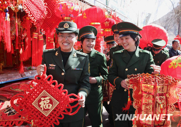 1月20日,武警西藏總隊二支隊的新兵在拉薩中和國際城花燈街選購年貨。春節前夕,武警西藏總隊來自祖國各地的官兵在高原警營里喜迎新春佳節。新華社發(趙艷志 攝)