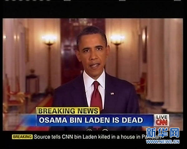 這張美國有線電視新聞網5月1日的視頻截圖顯示,美國總統奧巴馬在白宮宣布本·拉丹已死亡。新華社發