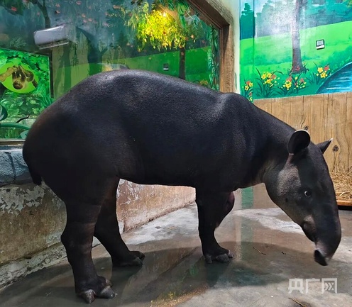 為給中美貘營造良好的環境,動物園特意在美洲館內展區的墻壁上繪制了逼真的熱帶雨林壁畫,地面鋪設有柔軟的干草墊,室內溫度也始終保持在25度左右,為中美貘提供舒適的休息環境,讓它在他鄉也能感受到家的溫暖。