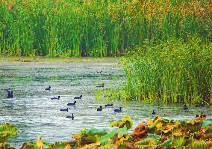 近日,巢湖市雙橋河周邊濕地陸續迎來國家二級保護動物白骨頂雞。
