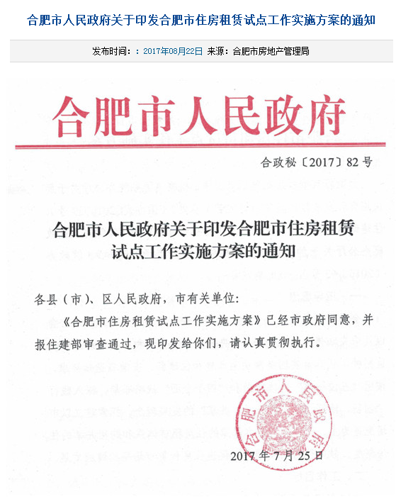到2020年,合肥將基本形成供應主體多元、經營服務規范、租賃關系穩定的住房租賃市場體系,基本形成保基本、促公平、多層級、可持續的住房租賃保障制度體系,基本建立國有租賃企業為引領、社會租賃企業為基礎的住房租賃服務市場,基本建成信息共享、功能完備、監管有力的住房租賃交易服務監管平臺。