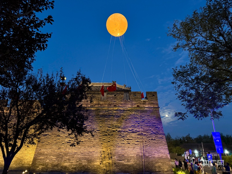 央廣網(wǎng)北京10月7日消息(記者 朱冠安)10月6日,北京宛平城迎來國慶中秋假期的高光時刻:直徑5米的“光影月亮”從西南城墻緩緩升空,還原“盧溝曉月”古畫意境;不遠處,一輪圓月也從云層后探出頭來,與這輪“人造月”在宛平城墻上空形成“雙月同輝”的奇景。盧溝升月,月映盧溝,永定河畔“盧溝醒獅”巍然矗立,城墻上500面五星紅旗迎風(fēng)招展,與明月交相輝映,為市民游客打造出一場跨越古今的詩意盛宴。