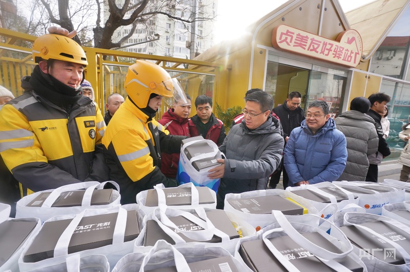 央廣網北京1月7日消息(記者 王進文)為深化北京市朝陽區“友好之城”建設,1月7日,安貞街道黨群服務中心黨委攜手街道總工會,在貞美友好驛站舉行“共朝美好,貞‘新’聚力”城市戶外勞動者慰問活動,向快遞員、外賣配送員、文明引導員、環衛工人、保安等戶外勞動工作者代表致以誠摯問候,現場發放暖心禮包,傳遞街道工委的關懷與溫度。