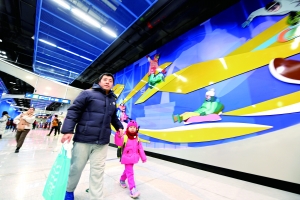 8號線三四期運營里程16公里,王府井北站、王府井站、前門站、中國美術館站-珠市口站區間暫緩開通。北京晨報記者了解到,8號線二期剩余段南鑼鼓巷站-美術館站區間、中國美術館站也在年底同步開通投入使用。據了解,8號線是中軸線沿線,北京中軸線正在申遺過程中。8號線三四期工程充分考慮了換乘和與周邊商業建筑、公共設施的結合。每站的裝修壁畫都別具特色。