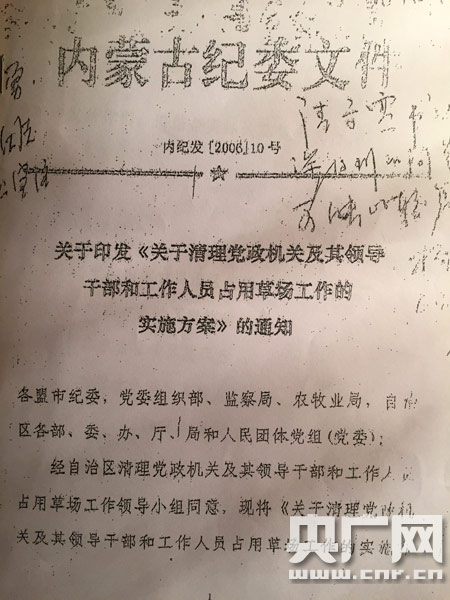 2006年內蒙古自治區區紀委文件(央廣網記者 白宇 攝)