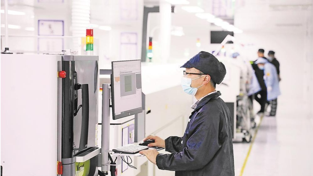 10月9日,在星云股份無塵車間生產線,身著防護服的工人在全力以赴忙生產,保障客戶儲能電池測試設備訂單如期交付。