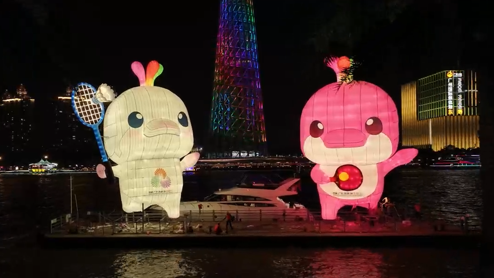 “喜洋洋”“樂融融”廣州塔下點亮珠江