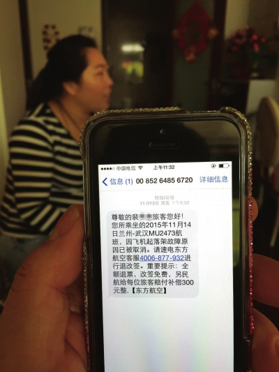 4月11日,裴女士給記者出示了從銀行打印的清單,回執(zhí)單顯示:157893.66元轉(zhuǎn)入他人賬號。而這一切都源于一條手機短信:“尊敬的裴女士您好!您乘坐的2015年11月14日蘭州至武漢MU2473航班,因飛機起落架故障原因已被取消。請速電東方航空客服4006-877-932進行退改簽。”