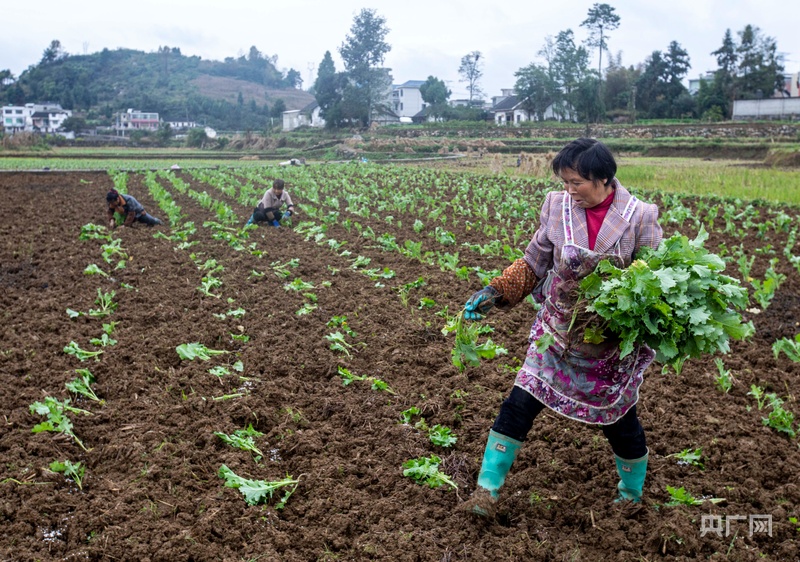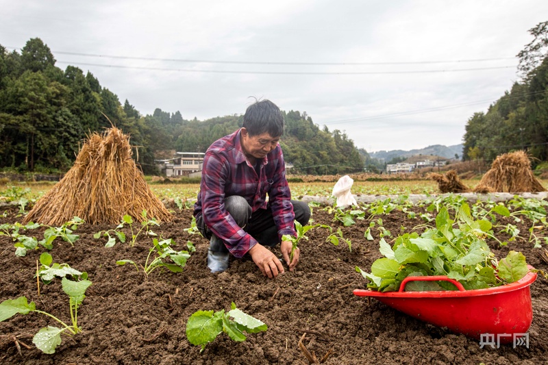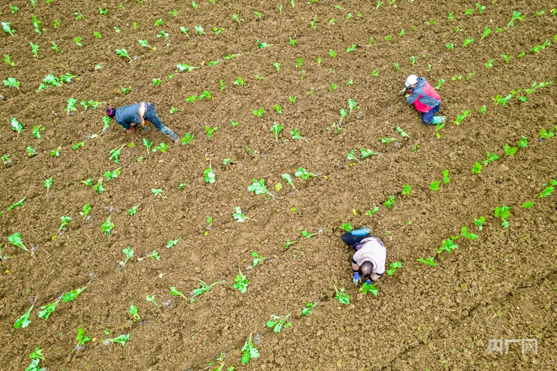 村民在移栽油菜苗(央廣網發 史開心 攝)