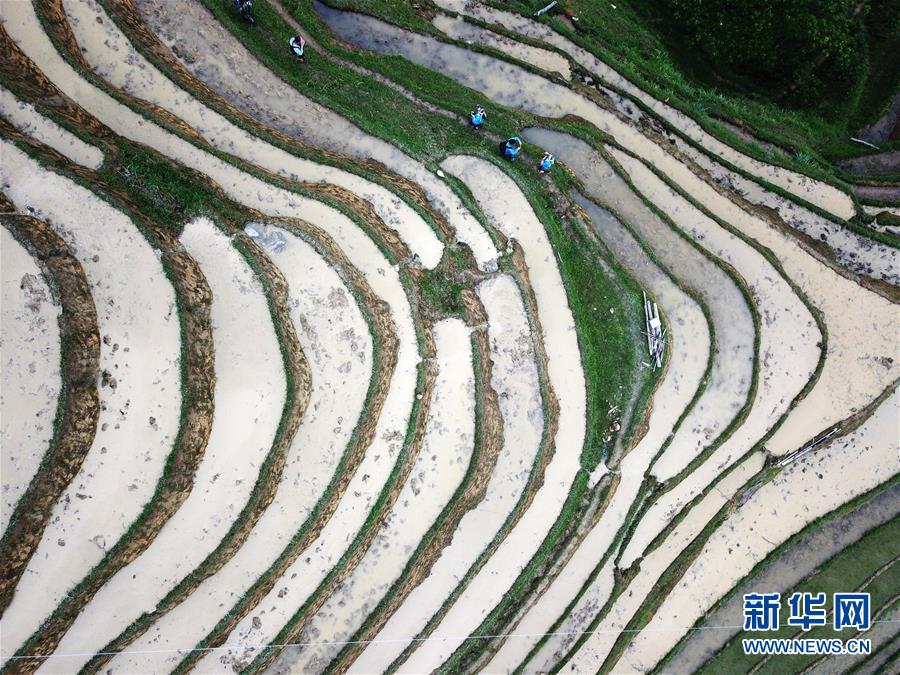 5月7日,貴州省榕江縣計劃鄉(xiāng)陽開苗寨的苗族群眾在耕田。初夏時節(jié),位于貴州省黔東南苗族侗族自治州榕江縣計劃鄉(xiāng)的陽開苗寨層層疊疊的梯田與古樸的苗寨木樓相互映襯,美如畫卷。新華社發(fā)(楊文斌攝)