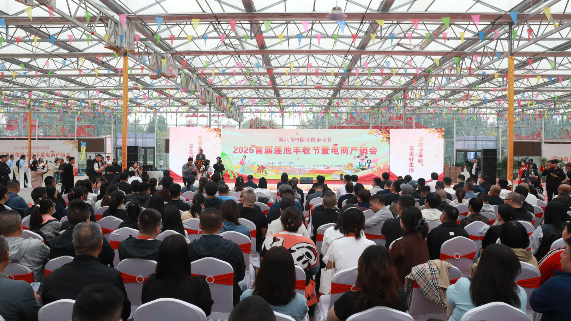 9月23日,正值第八屆中國農(nóng)民豐收節(jié),河北省保定市蓮池區(qū)2025年首屆豐收節(jié)暨電商產(chǎn)銷會現(xiàn)場熱鬧非凡,電商主播正熱情推薦產(chǎn)品。