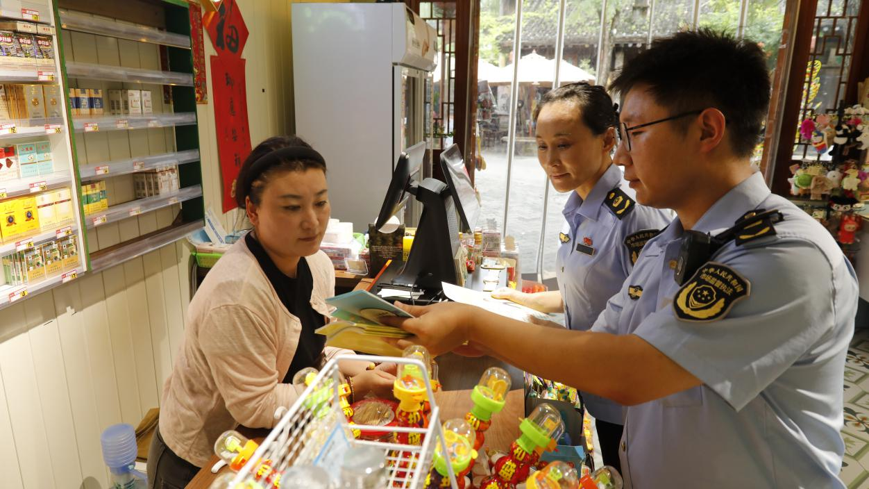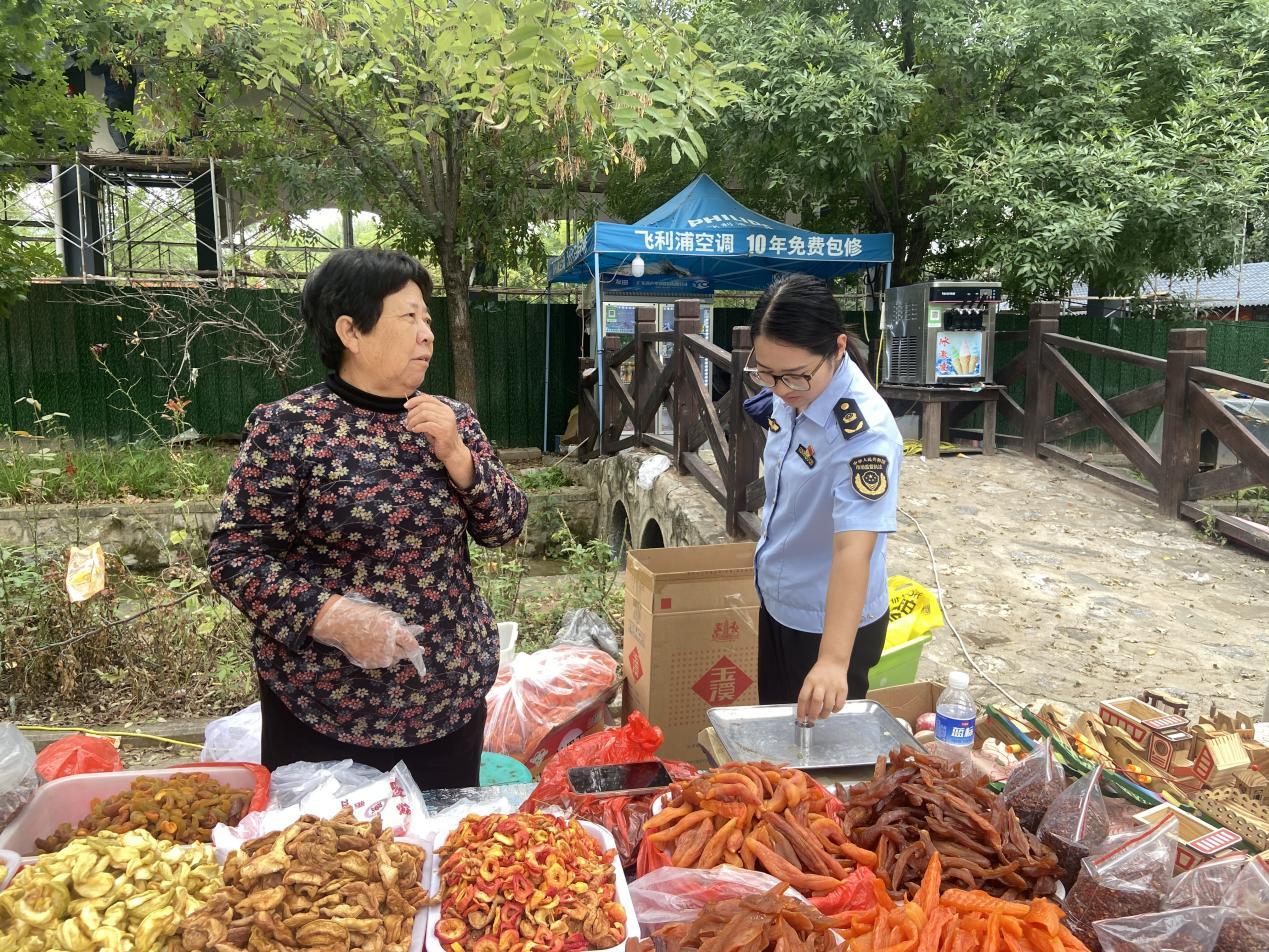 工作人員在景區周邊進行計量器具(電子秤)監督檢查(邸小雨 攝)