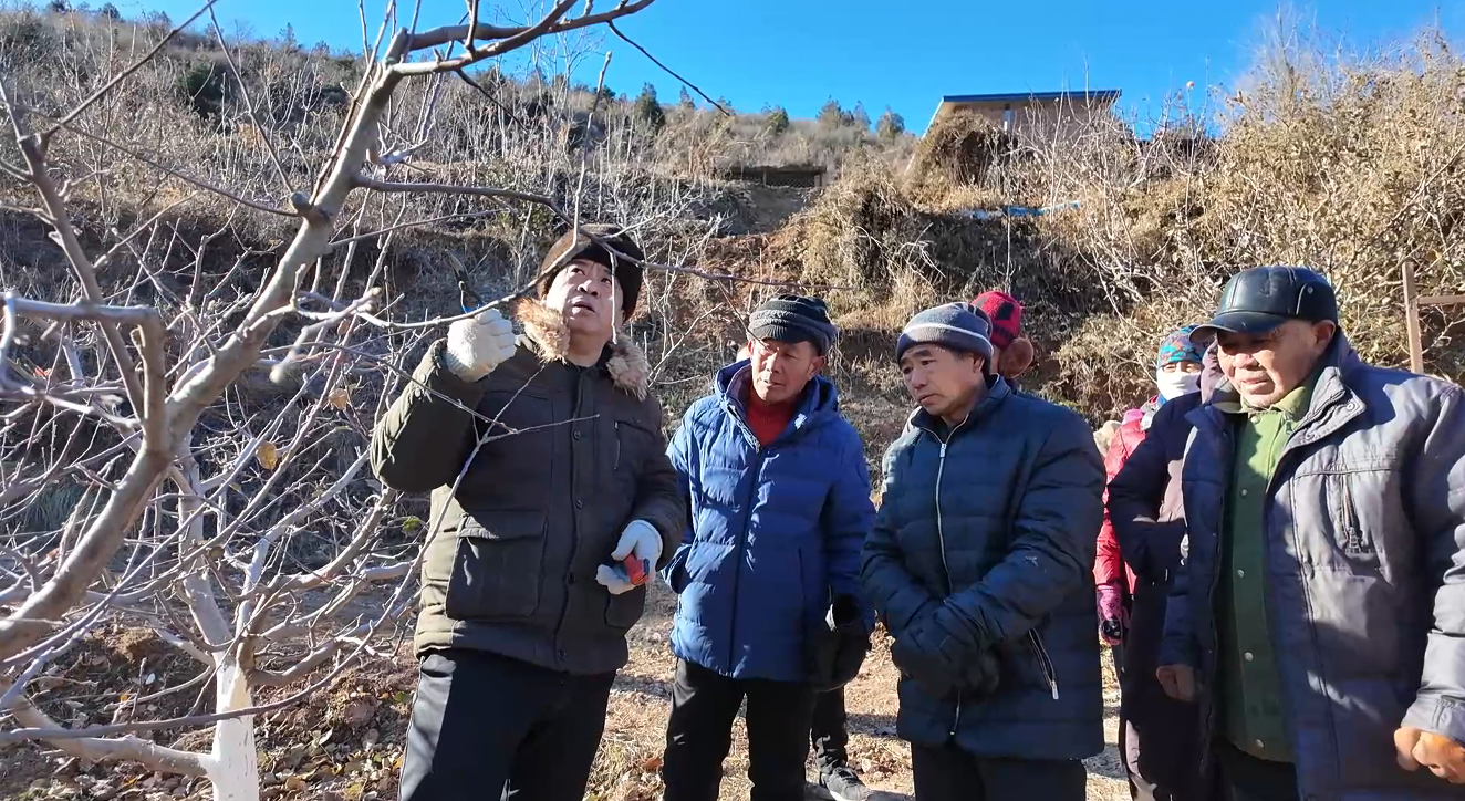 近日,在三河市段甲嶺鎮前蔣福山村果園,農技專家深入田間地頭,現場指導果農開展冬季果樹管理。