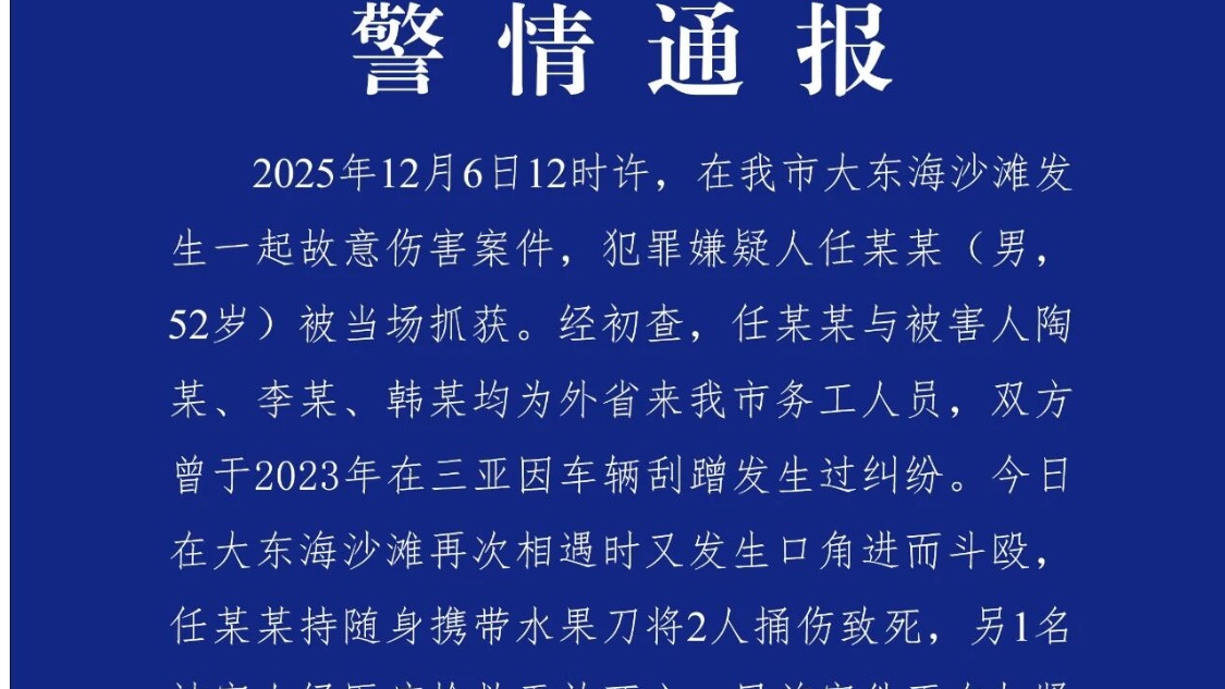 三亞警方通報:一男子持刀致3死 犯罪嫌疑人已被抓獲