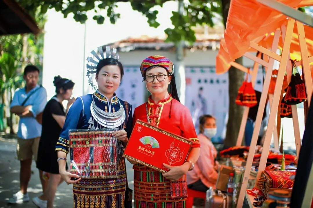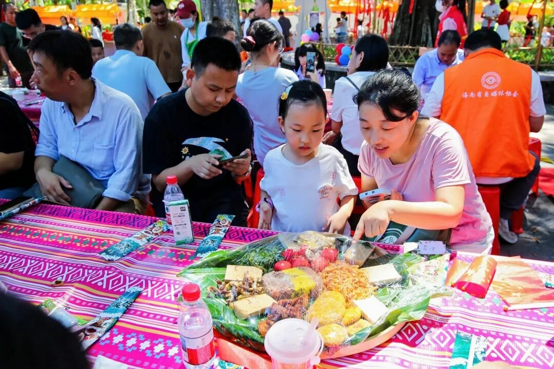 愛心助農銷售與文創產品展示環節同樣熱鬧。民俗特色產品展架上,來自番陽鎮手藝人制作的黎錦、苗繡、手工包等非遺文創產品做工精美,包裝山蘭糯米酒、包裝魚茶、虎乳靈芝、椰殼制品等特色產品琳瑯滿目,推介員耐心講解每款產品的工藝與文化內涵,吸引不少游客駐足選購。沿路設攤的脫貧戶與村民,則帶來螞蟻雞、竹筒飯、蜂蜜、椰子、野菜等本地原生態農產品,新鮮的品質與實惠的價格深受青睞。據統計,當日農產品與文創產品的銷售額達2萬余元,既拓寬了當地老百姓的銷售渠道,也讓游客帶走了番陽的“煙火氣”。