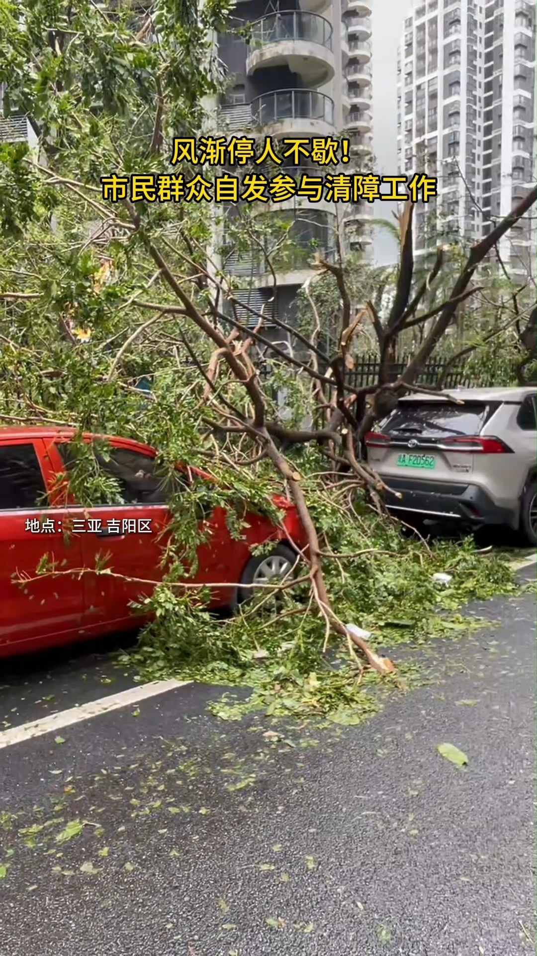 風漸停人不歇!三亞市民群眾自發參與清障工作