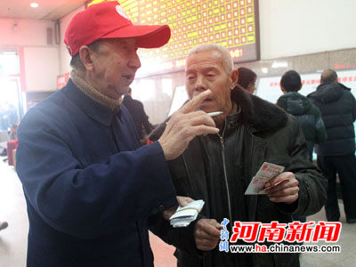 央廣網(wǎng)河南分網(wǎng)消息 春運(yùn)啟幕,無數(shù)外出打工人員走上歸鄉(xiāng)之路。在河南鄭州火車站東廣場(chǎng),78歲老人趙顯達(dá)放棄在家清閑,帶著紅帽子,“老年雷鋒團(tuán)”袖章,熱情地為四面八方的旅客指路、倒水、提供醫(yī)藥包、針線盒……趙顯達(dá)2000年加入“老年雷鋒團(tuán)”這個(gè)義務(wù)為春運(yùn)旅客義務(wù)提供指路等便捷服務(wù)的公益團(tuán)體,至今已默默服務(wù)15年。