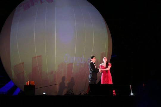各國運動員悉數入場后,閉幕式迎來了最受矚目的“成都時間”。成都2021年大運會文化交流大使、著名歌唱家廖昌永和意大利歌唱家Cecilia Molinari共同演繹意大利民歌《我的太陽》作為開場,以國際化的音樂引出天府文化的代表符號“金沙太陽神鳥”舞蹈。