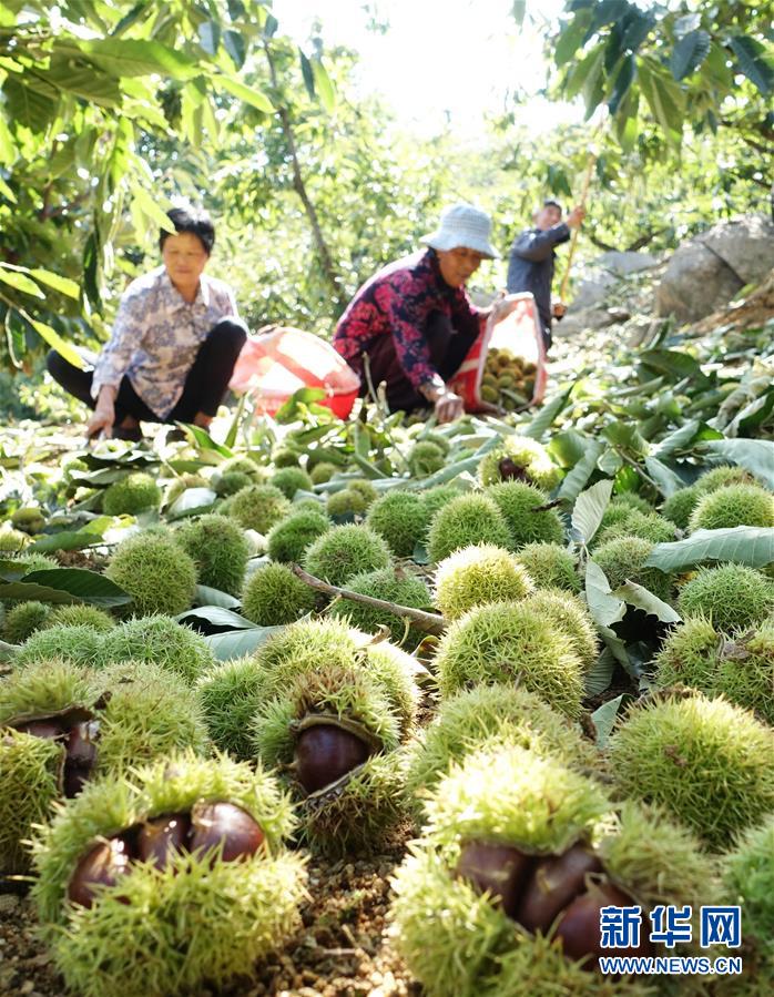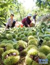 • 9月13日,山東省棗莊市山亭區武王莊村農民在收獲板栗。初秋時節,山東省棗莊市山亭區種植的板栗迎來豐收季節,農民們抓住晴好天氣忙著收獲,到處是一派繁忙的景象。 新華社發(李宗憲 攝)
