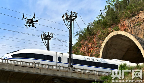 央廣網鄭州6月16日消息 6月8日15時20分,在鄭西高鐵余頂隧道西端附近,一架特制的黑色無人機從地面“一躍而起”,上升至50多米的高空后懸停 ,“俯瞰”著整個隧道口。