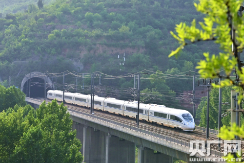 航拍一列高鐵列車行駛在徐蘭高鐵鄭西段