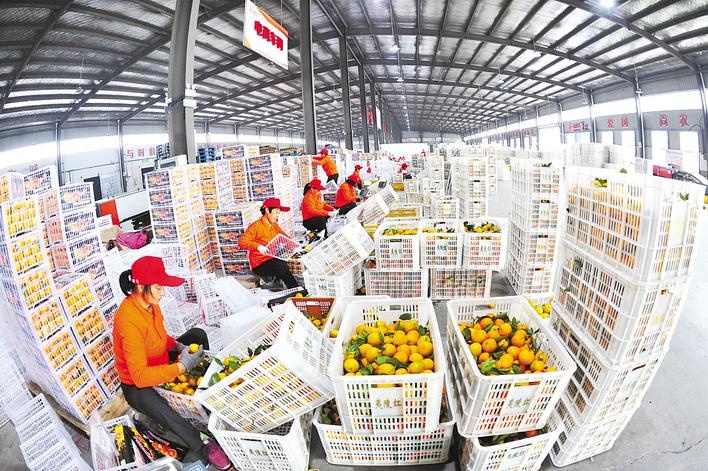 10月30日,宜昌市夷陵區星翔農產品專業合作聯社員工加緊分選包裝“夷陵紅”柑橘,確保按時交付來自俄羅斯的訂單。
