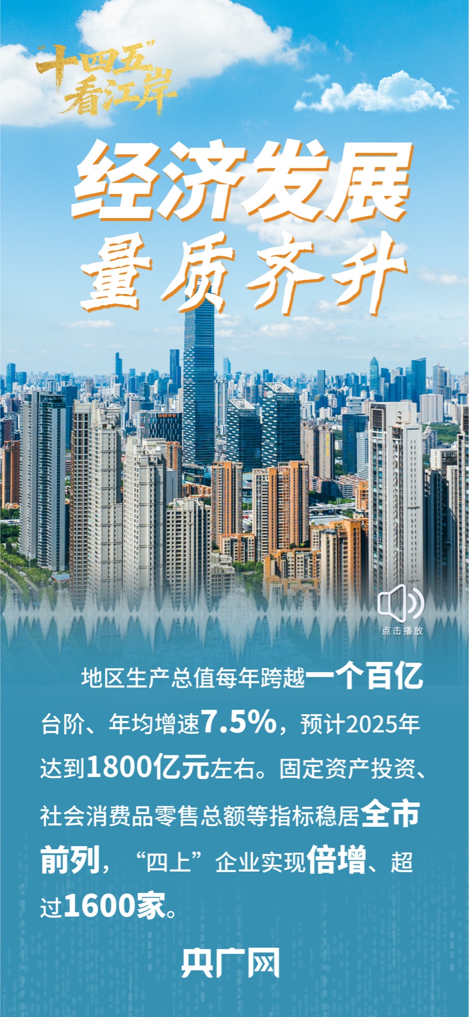 12月11日,中共江岸區委十三屆十九次全會舉行。“十四五”以來,江岸區加快推進經濟發展轉型、城市建設轉型、城區治理轉型、高質量發展邁出堅實步伐。央廣網聯合中共江岸區委宣傳部發布有聲海報,共同回顧江岸“十四五”經濟社會發展精彩答卷。