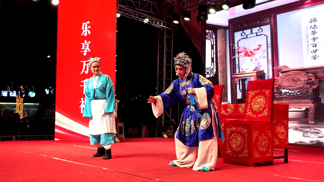 活動現場,充滿地方特色的荊州花鼓戲《家和萬事興》開啟了一場精彩表演。演員們身著華麗戲服,踩著鏗鏘鼓點登場,母親、兒子、媳婦等角色的魅力,通過清亮的唱腔與細膩的身段展現得淋漓盡致。臺下人頭攢動,掌聲、歡呼聲與音樂聲交織,匯成一曲熱鬧的 “雙節交響樂”。