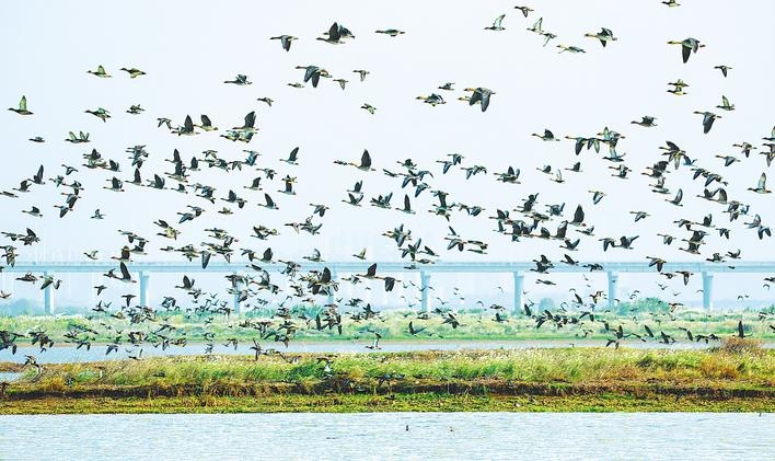柏泉府河濕地提前迎來越冬候鳥