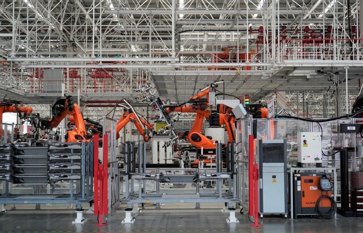 這是湖南省長沙市三一智聯重卡產業園內的生產場景(2025年4月23日攝)。新華社記者余春生 攝