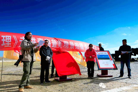 發布會上,《中國國家地理》簽約攝影師袁蓉蓀宣讀“青海最美觀景拍攝點”首批的20個名單。隨后,揭牌儀式舉行,“青海湖”和“祁連風光”兩個最美觀景拍攝點的牌子正式亮相。