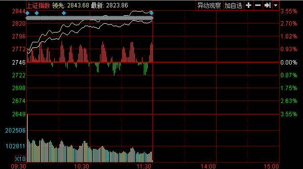 截至午間收盤,滬指報2823.86點,漲2.83%;創業板漲3.86%。