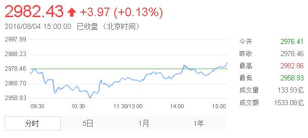收評:滬指震蕩漲0.13%劍指3000點 創業板漲1.01%