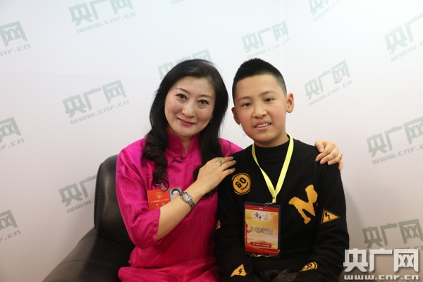 全國人大代表、國家一級演員陳澄(左)接受央廣網小記者劉新辰(右)采訪。