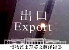 ---------------------------------------------------------------- 文化重地出現(xiàn)錯別字,也不僅故宮一個。日前,國內(nèi)一家博物館被曝通道“出口”的英語標(biāo)志,被錯誤地翻譯成“export”,這個單詞中文意思雖然也是“出口”,但指的是國際貿(mào)易的出口。正確翻譯應(yīng)為“exit”。