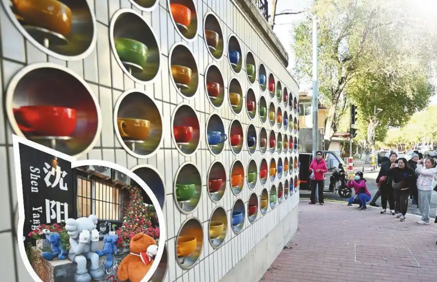 一面被各種顏色咖啡杯裝點的“咖啡杯矩陣墻”成為來自各地的游客及本地市民的新打卡點。