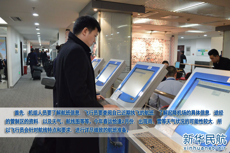 機組人員正在自助機上查詢航班信息