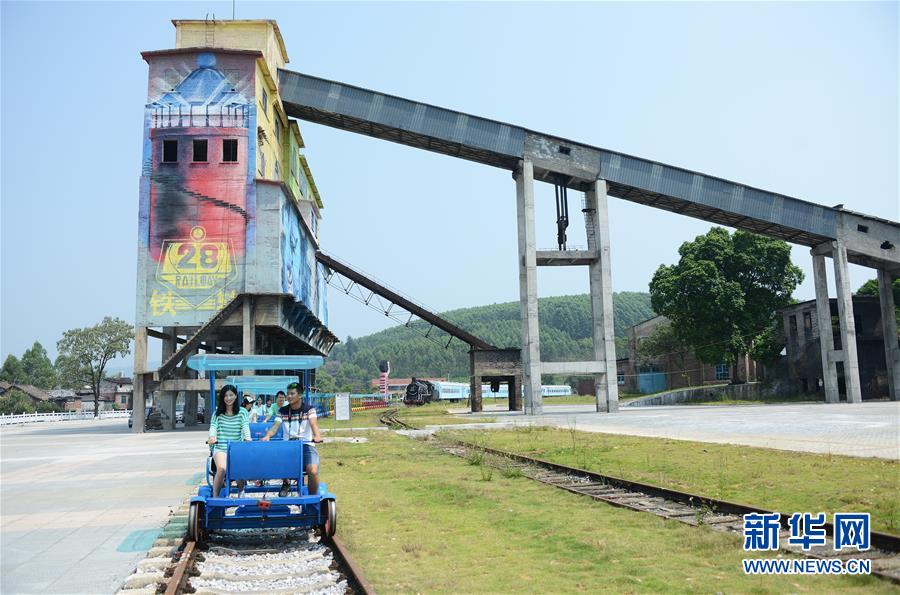 9月21日,游客在景區內體驗“鐵路自行車”項目。 2009年,合山被列為國家第二批資源枯竭型城市,此后,合山陸續關停礦井,而2014年7月關閉停產的東礦是合山市最后一個關停的大型礦井,也是保存最為完整的廢棄礦井。在東礦關停后,合山市對礦區遺址進行加固和保護等治理工作,并在此基礎上融入旅游元素,打造成獨具特色的28號鐵軌·十里花廊景區,并于2016年3月8日正式對外開放,目前已累計接待游客約2.5萬人次。據悉,景區還將建設井下采煤體驗區、工礦遺跡展示區、礦工生活體驗區等,進一步提升景區旅游資源。新華社記者王全超攝