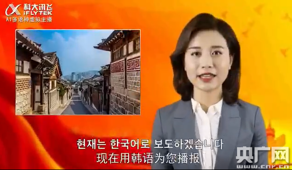 科大訊飛研發的虛擬主播,可用中、日、英、韓等多種語言和方言切換播報。據悉,科大訊飛虛擬主播已于今年3月亮相全國兩會。