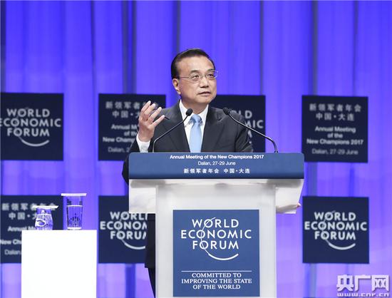 6月27日,國務(wù)院總理李克強(qiáng)在大連國際會議中心出席第十一屆夏季達(dá)沃斯論壇開幕式,并發(fā)表特別致辭。
