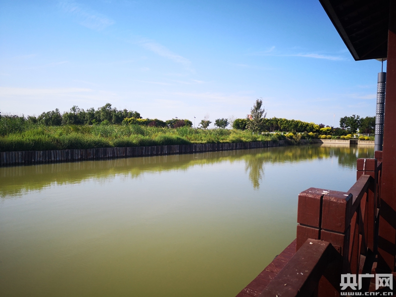 21日,采訪團來到天津七里河當天,晴空萬里,碧波粼粼。(央廣網記者 梁爽 攝)