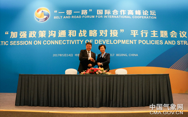 2017年5月,《中國氣象局與世界氣象組織關于推進區域氣象合作和共建“一帶一路”的意向書》簽署。(中國氣象局供圖)