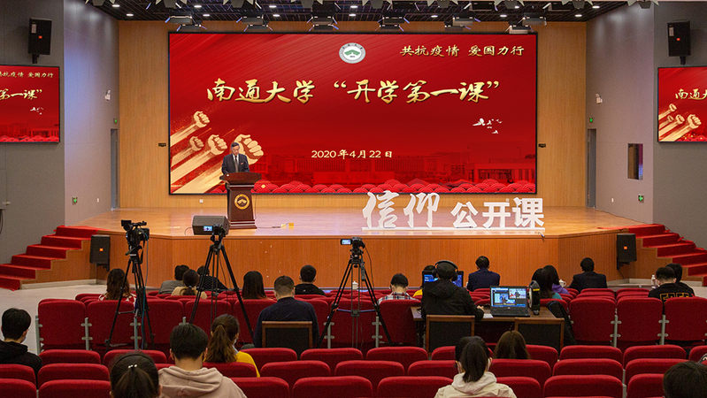 央廣網南通4月24日消息(記者孫冰潔)“疫情中我們看到了什么?領悟到了什么?作為青年,應該做些什么?”帶著這些問題,4月22日下午,江蘇南通大學“開學第一課”于線上、線下同步開講。剛從抗疫一線返回的“援鄂醫療隊”成員——南通大學第二附屬醫院黨委書記、江蘇省援黃石第二批醫療隊領隊仲崇俊等人走上講臺,為學子們帶來了特殊而生動的一堂課。