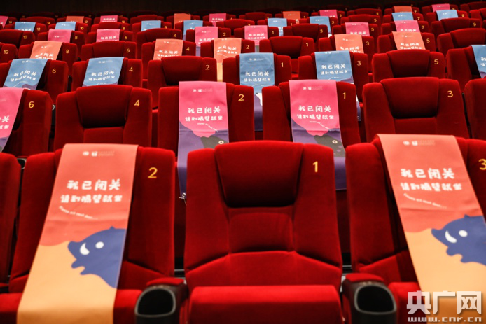 觀影現(xiàn)場,觀眾們間隔而坐(央廣網(wǎng)記者張凱航 攝)