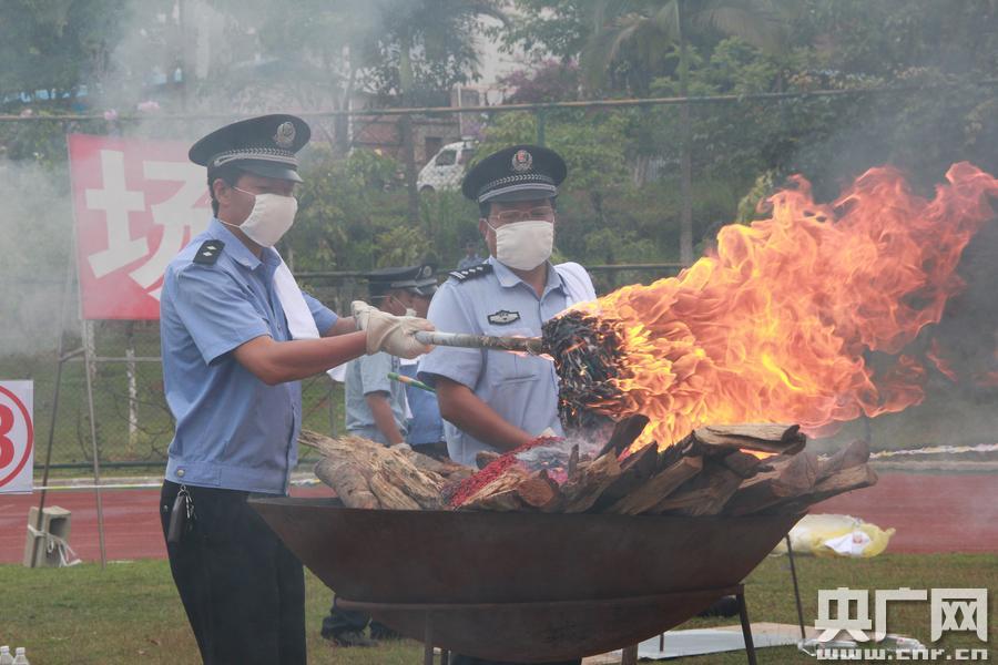 警方現(xiàn)場銷毀海洛因、冰毒等毒品(白董 攝)
