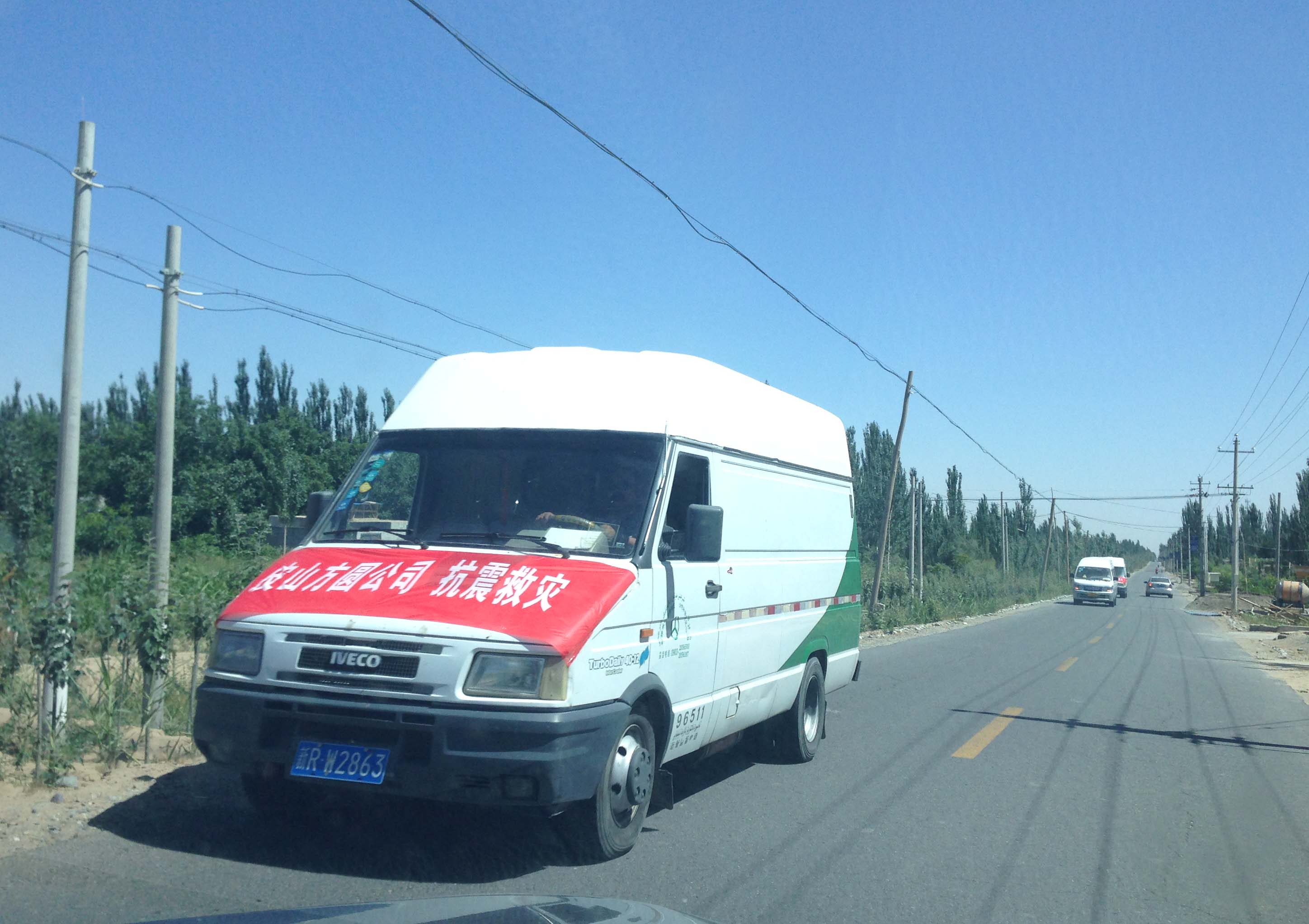 在皮山縣鄉(xiāng)村多見救災(zāi)物資運輸車輛