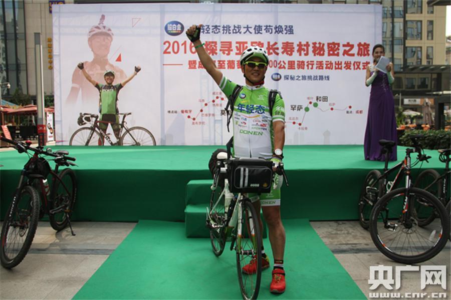 央廣網(wǎng)成都5月4日消息(記者賈宜超)5月4日上午,自行車運(yùn)動愛好者,48歲的青島男子茍煥強(qiáng)從成都啟程出發(fā),正式開始他15000公里跨洲騎行,從成都騎車到葡萄牙。茍煥強(qiáng)計劃將在88天內(nèi)完成15000公里的騎行,如果挑戰(zhàn)成功,他將成為最短時間持續(xù)騎車從成都到葡萄牙的第一人。