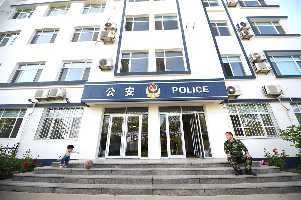 方雷舉利用閑暇和孩子在派出所門口玩球,父子倆最常玩的地方就是派出所院內(nèi)。