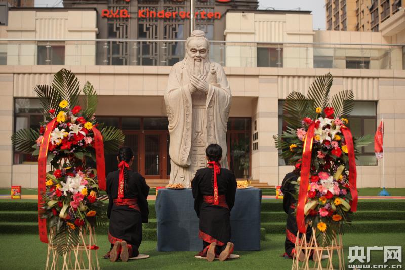 央廣網濟南9月29日消息(記者 劉?┤寮矣小安粚W禮、無以立”的思想,在先師孔子誕辰之際,位于濟南市高新區鳳棲第的紅黃藍幼兒園舉辦祭孔儀式,通過這一形式,在幼兒心中種下“尊師 孝親 明理 崇文”的種子。