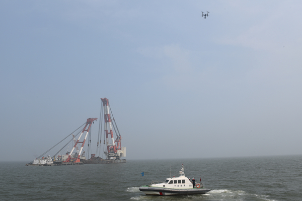 碧海行動是交通運輸部為保護渤海海上交通運輸暢通,防止沉船存油泄漏污染海洋環境而開展的公益性沉船打撈行動。在2017年“碧海行動”中,天津轄區共有五艘沉船“棗莊888”輪、“蘇連海519”輪、“華源順18”輪、“冀灤漁04604”輪、“渚揚3”輪。其中,由于“華源順18”輪、“渚揚3”輪等沉沒時間久遠,無法與船舶所有人取得聯系,天津海事局通過現場走訪公安、工商、街道等部門積極尋找沉船所有人,并征詢沉船殘骸處置意見,切實保護相對人權益和訴求。在碧海行動實施過程中,海事局專門建立了5艘沉船的檔案,嚴格沉船打撈實施的各個環節控制;同時,天津海事局利用VTS系統全程重點跟蹤服務碧海行動,通過VHF定時播發安全信息,對打撈水域實施有效的交通管制,東疆海事局加大了電子巡航力度,利用無人機技術充分發揮三位一體立體巡航作用,有效保障沉船打撈工作順利進行。
